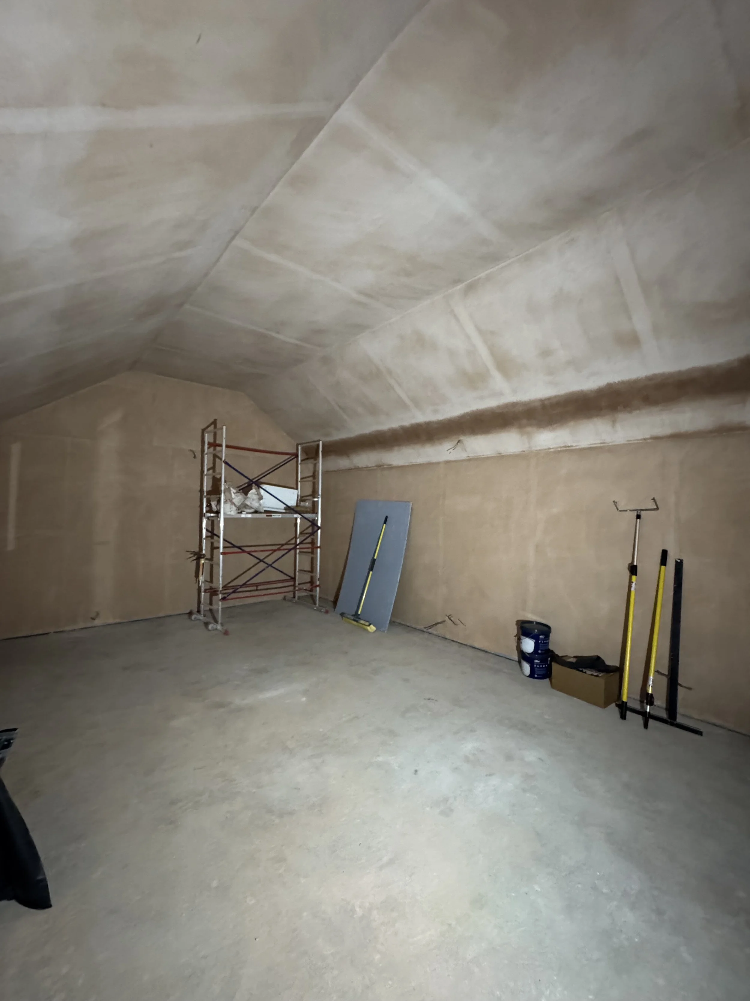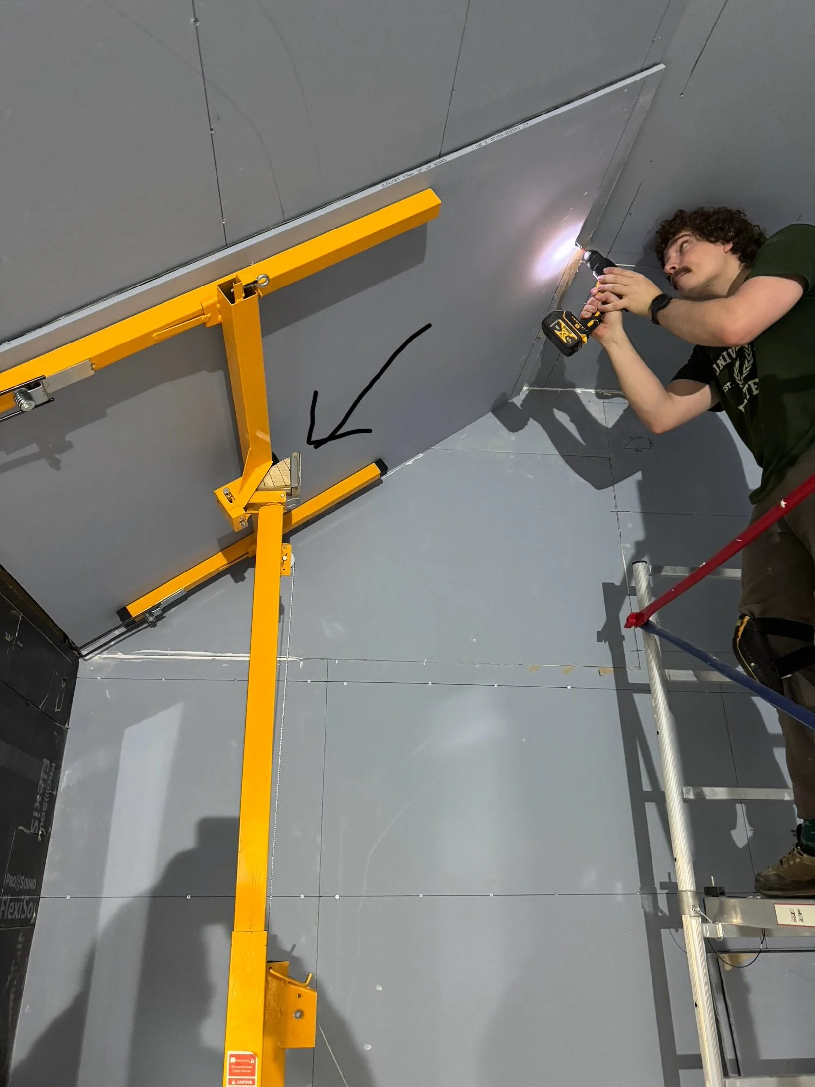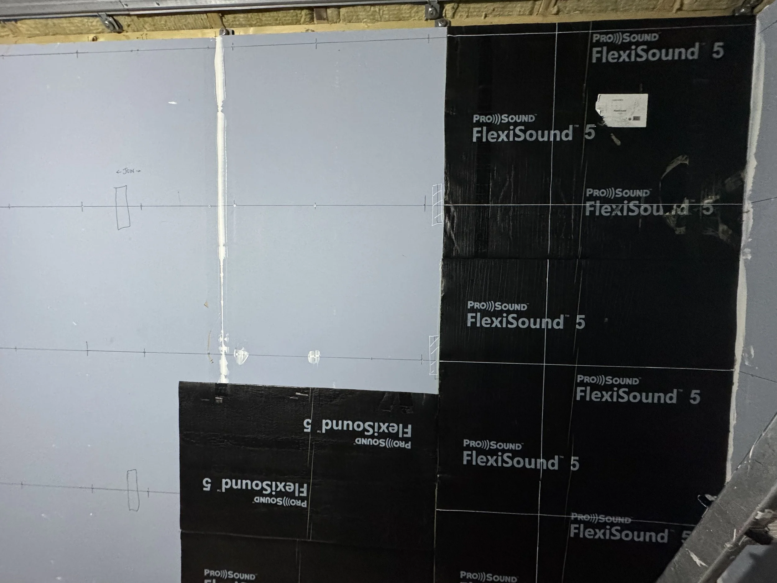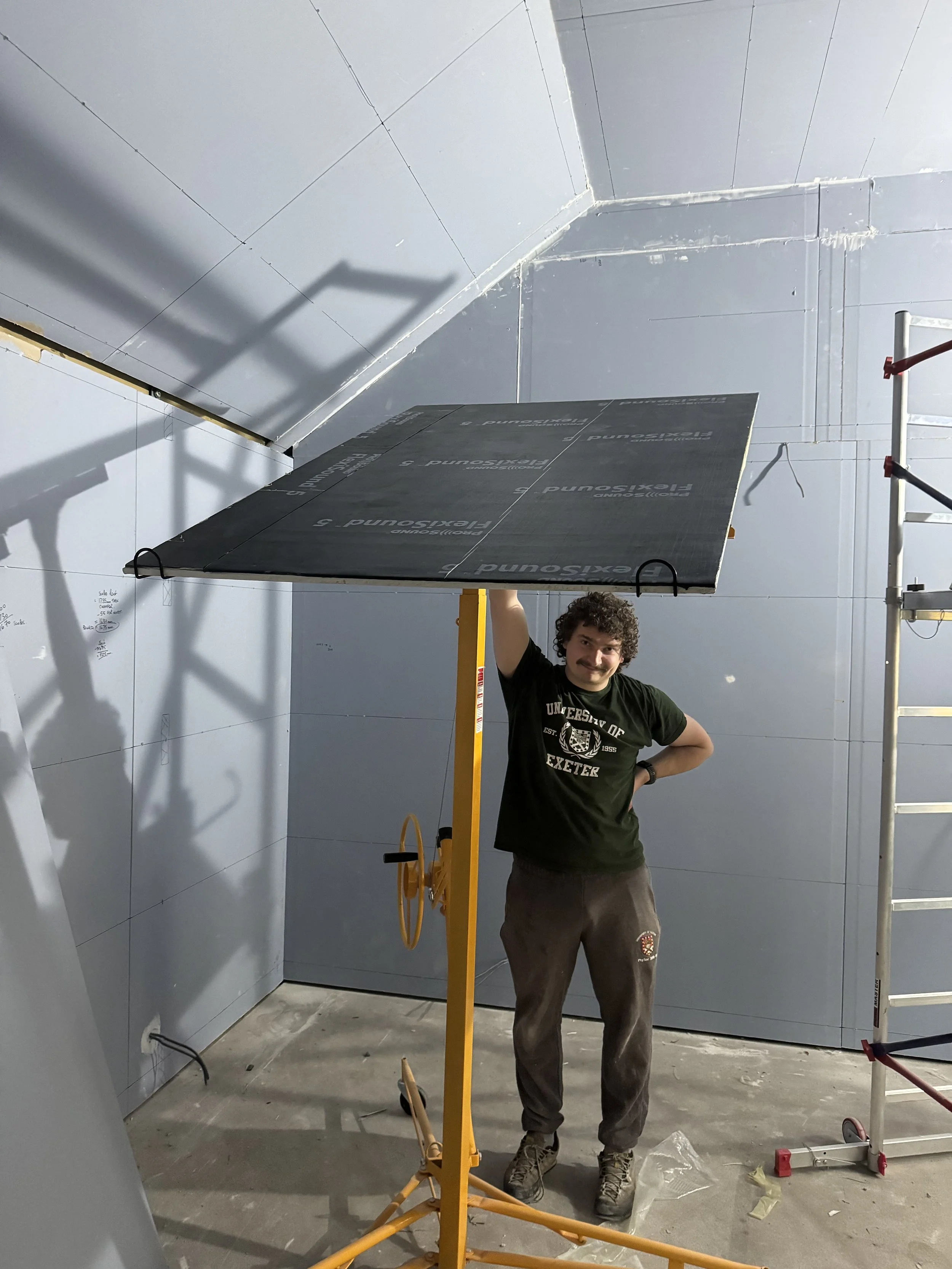 Alfie my son, came for a weekend to help me finish the second layer of drywall (with the Mass Loaded Vinyl already stuck on)
