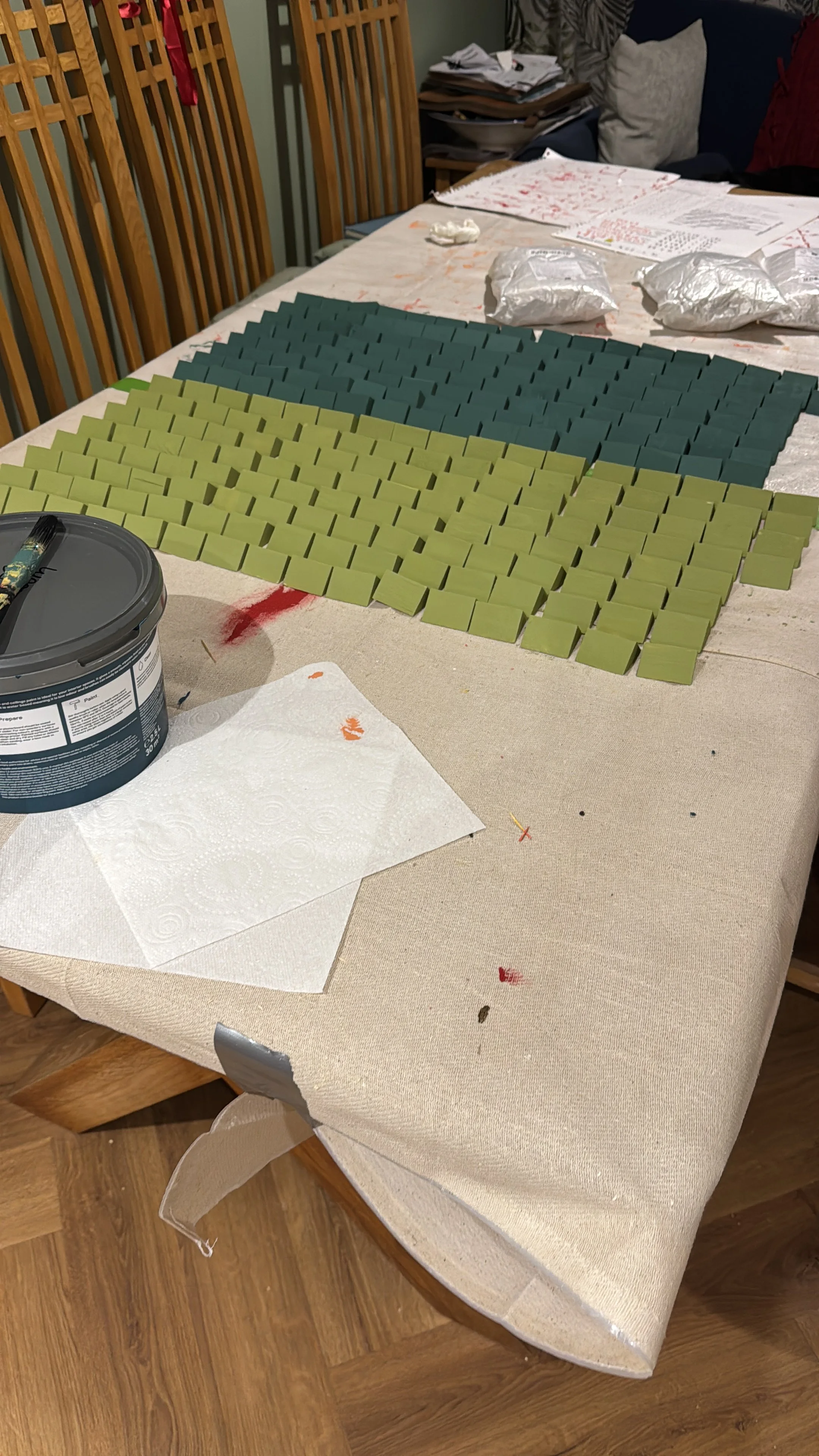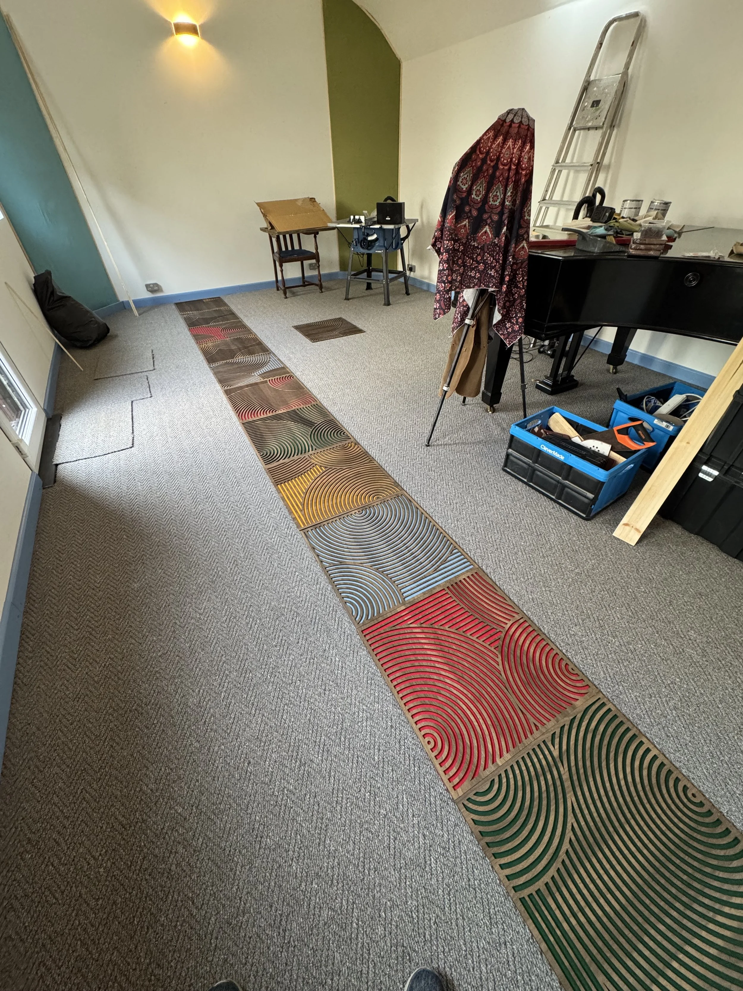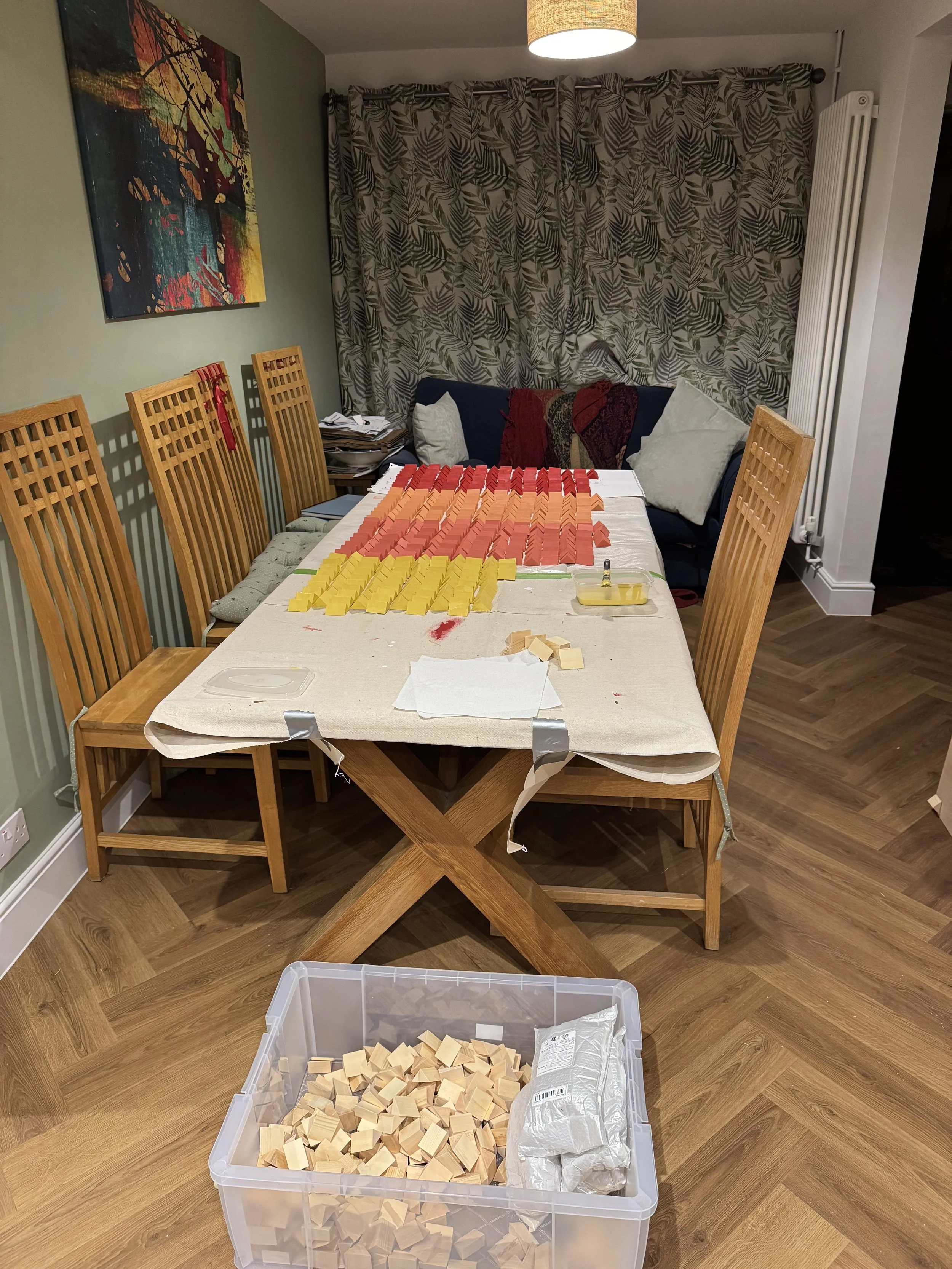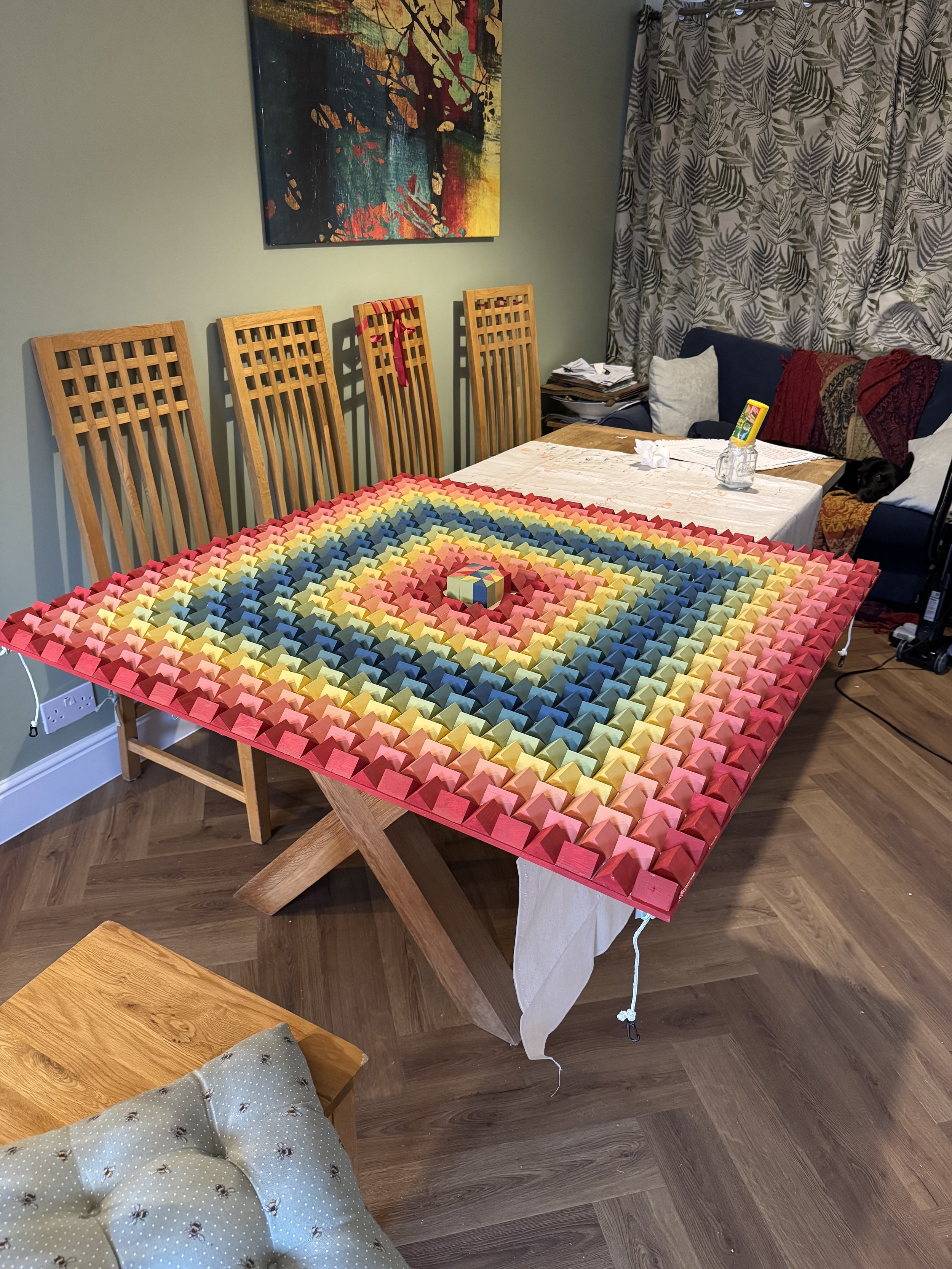 The finished panel was admittedly a little more vibrant than I anticipated but a static picture does not do it justice. As you move around it, its vibrancy changes. But if was to make another I would calm down a little on the colour, for sure.
