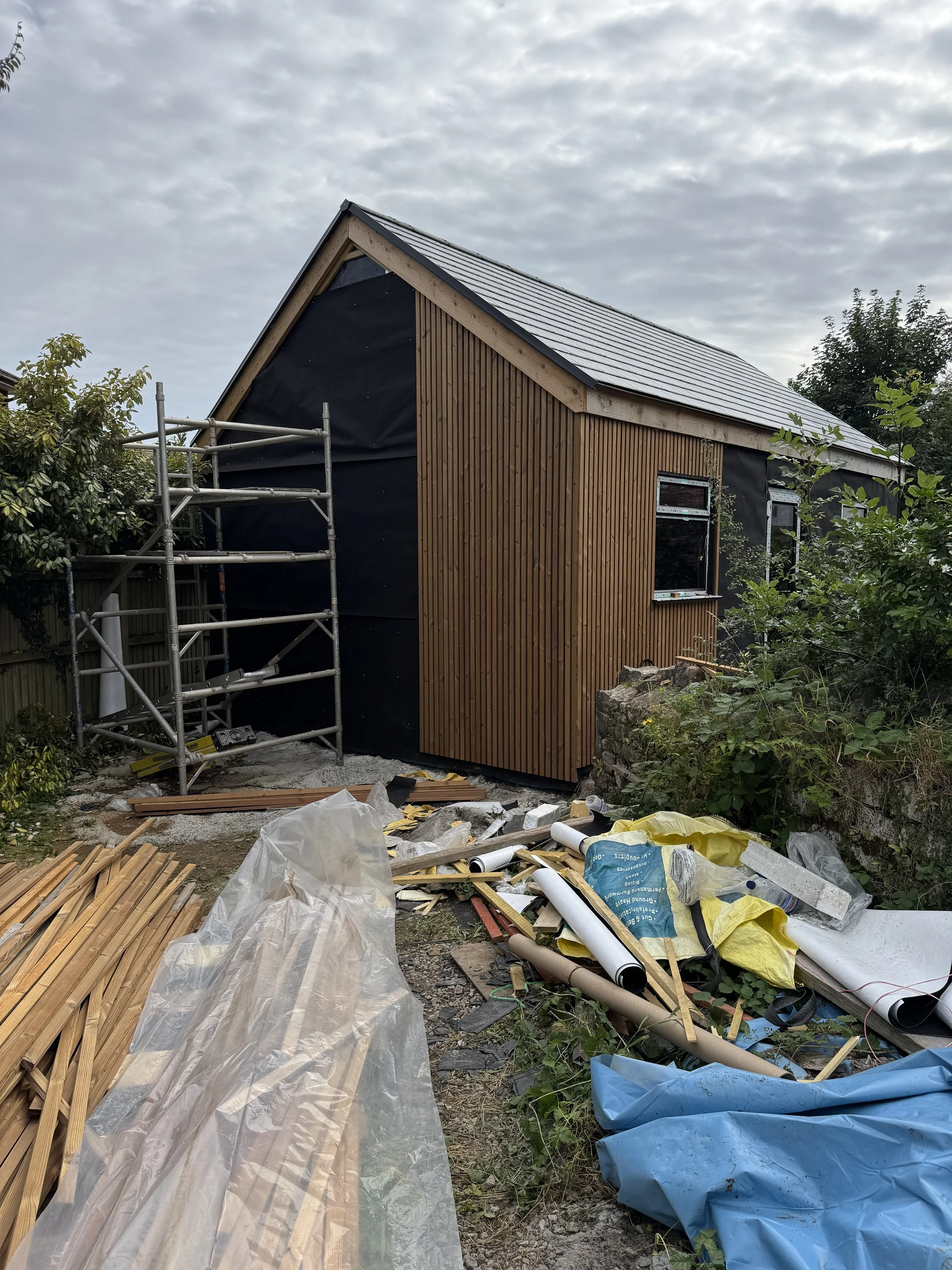 In July 2025, the final external construction was completed. An ‘off and on’ cladding that would eventually be a theme inside the studio as well.